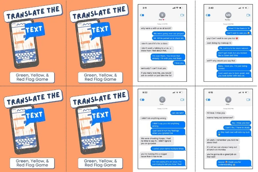 Create an opportunity for participants to test their knowledge in an engaging way and identify green, yellow, and red flags in relationships. Great small group activity for workshops.
